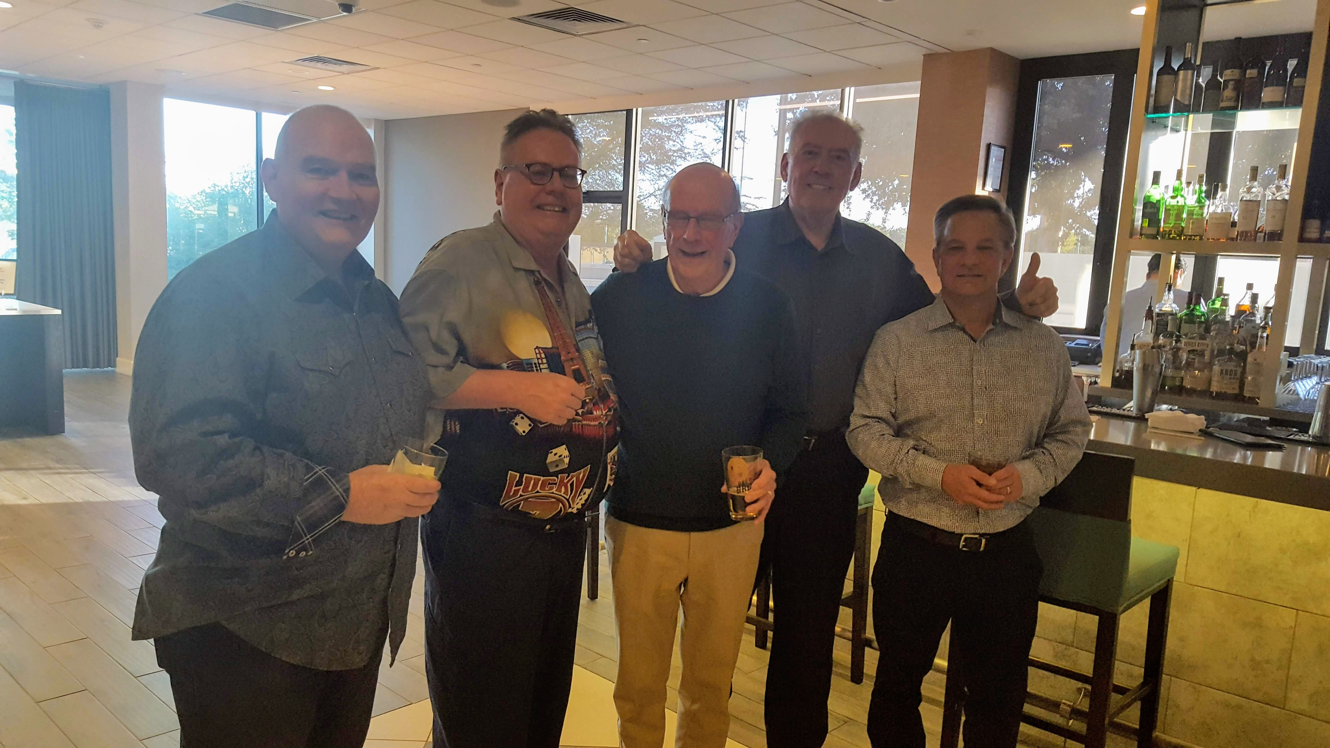 Below, that's Dan on the left, then Cat Simon, former KVIL GM Dave Spence, me, and Steve Eberhardt at the 2019 KVIL Reunion.