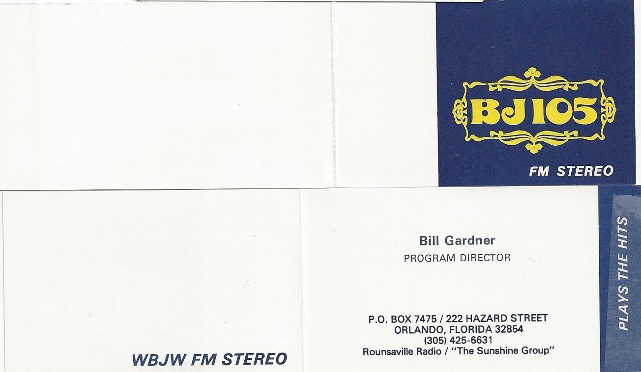 I heard from my brother Al in Orlando that once dominant WBJW-FM BJ-105 had just slipped down to 5th place in the latest ratings with an 8.5% share. I knew VP/Programming Tom West from our time at WHB in Kansas City, so I contacted him. I could not only take the reins as Program Director, but also provide a pretty good morning show too! Done deal!